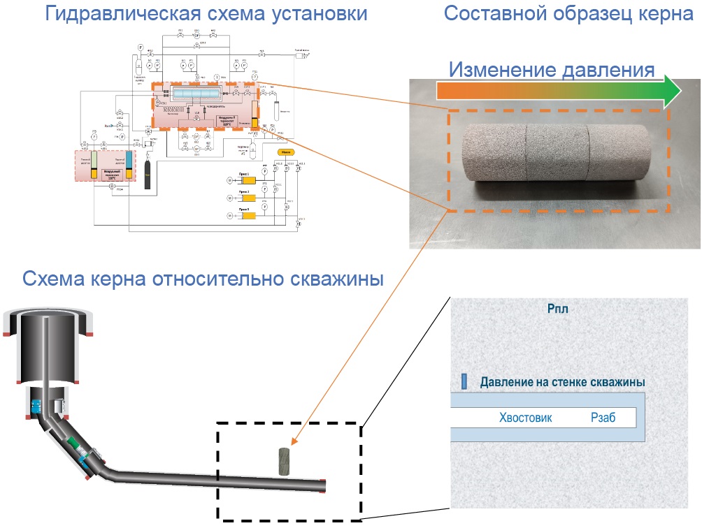Стало очевидно, что область, наиболее подверженная рискам обрушения, расположена в непосредственной близости от ствола скважины (первые единицы или десятки сантиметров), поскольку эта область характеризуется наибольшим перепадом порового давления на единицу расстояния. Поровое давление в этой зоне, очевидно, будет отличаться как от пластового давления, согласно его классическому определению, так и от забойного. Для целей исследования это значение определено как давление на стенке скважины (рис. 7).
